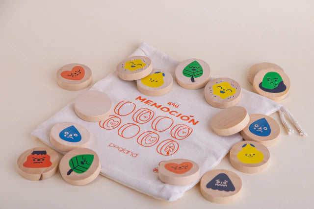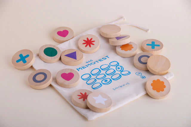 Este divertido memotest de madera es ideal para desarrollar la memoria y la asociación. Viene en una práctica bolsa de lienzo que lo convierte en un regalo perfecto y fácil de transportar.